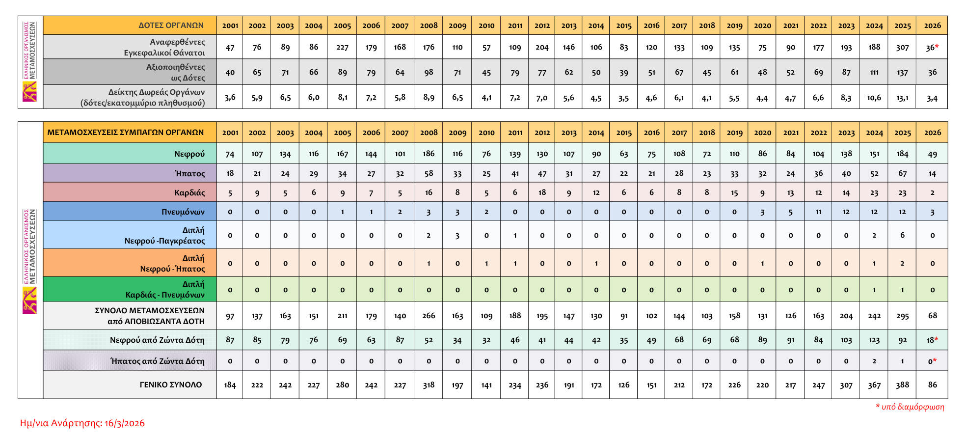 • Απολογισμοί Μεταμοσχευτικής Δραστηριότητας Συμπαγών Οργάνων